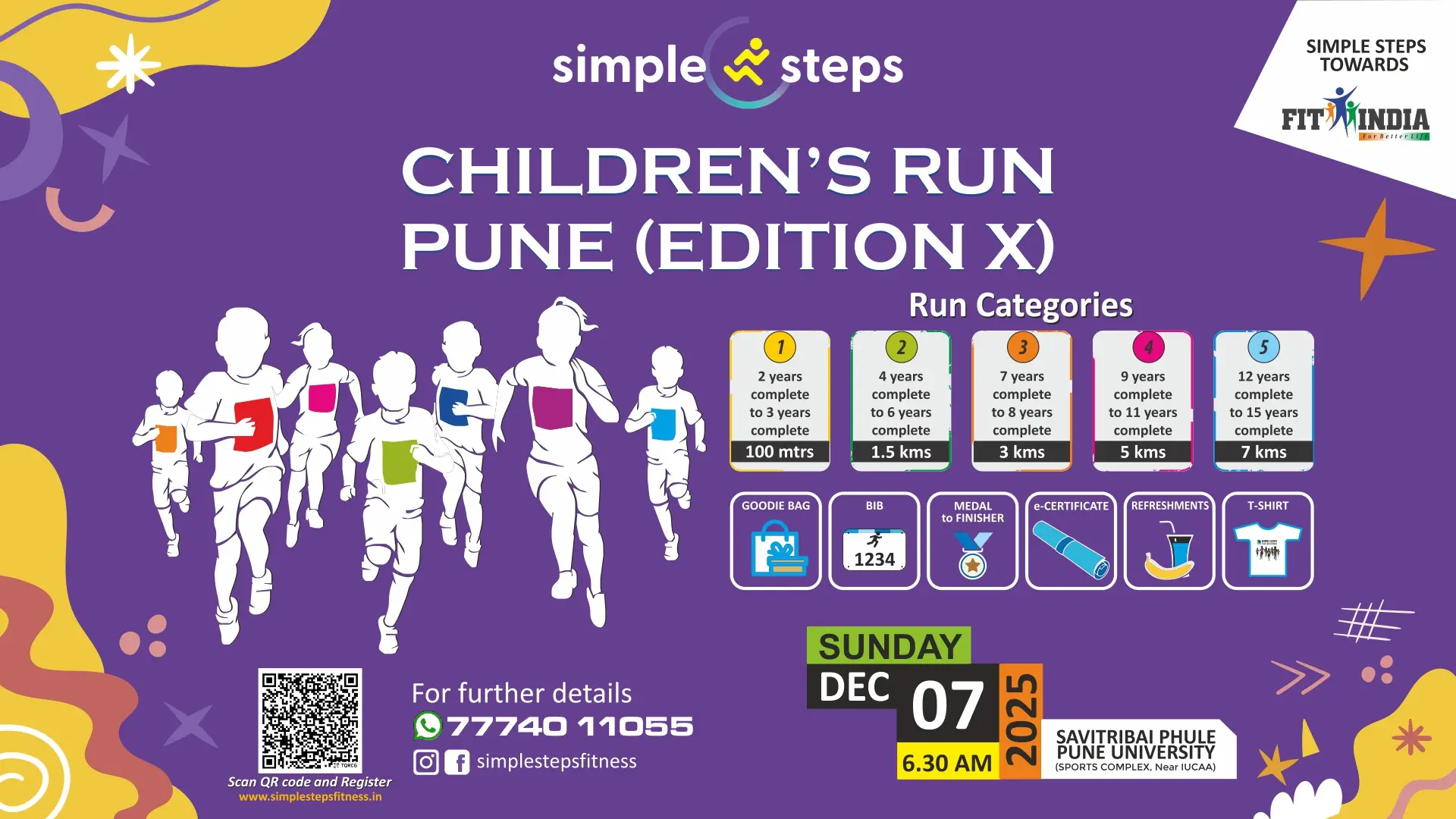 Founded in 2015, Simple Steps Fitness began its journey with “Run for Happiness”, a unique running event exclusively for children, held on the joyous occasion of Children’s Day. What started as a small initiative quickly blossomed into a movement encouraging fitness with fun, positivity, and community spirit.
